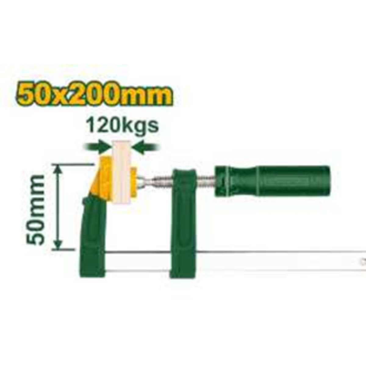 - Kích thước kẹp 50x200mm cho phép sử dụng linh hoạt trên nhiều loại vật liệu có độ dày khác nhau. Người dùng có thể dễ dàng điều chỉnh độ mở kẹp để phù hợp với từng công việc cụ thể, từ làm mộc cơ bản đến các thao tác cơ khí thông dụng.